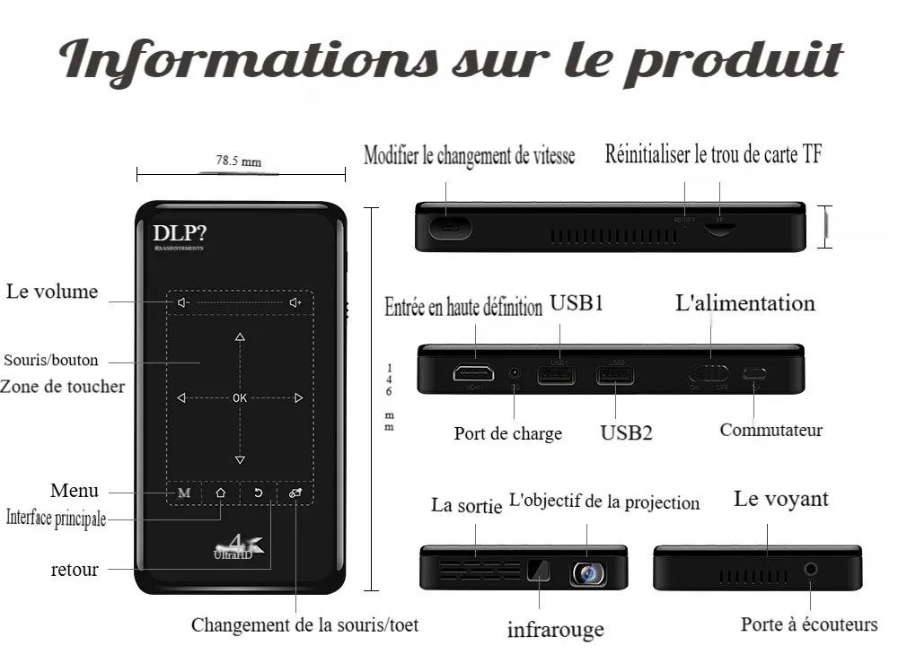 - luminosité: 60 ANSI lumens
