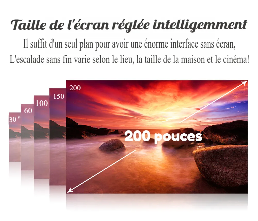 - Taille de l’image projetée: 30-200cm