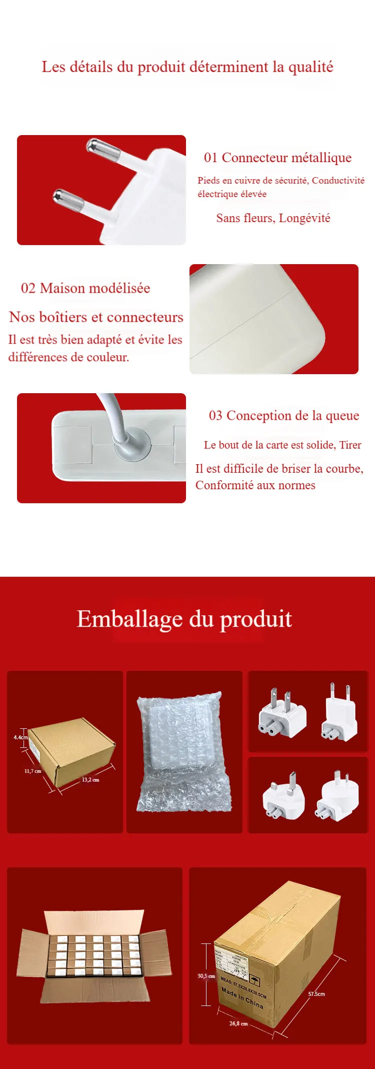 - Couleur : Tête en L standard européenne, tête en T standard européenne, tête en L standard américaine, tête en T standard américaine, tête en L standard britannique, tête en T standard britannique, tête en L standard australienne, tête en T standard australienne