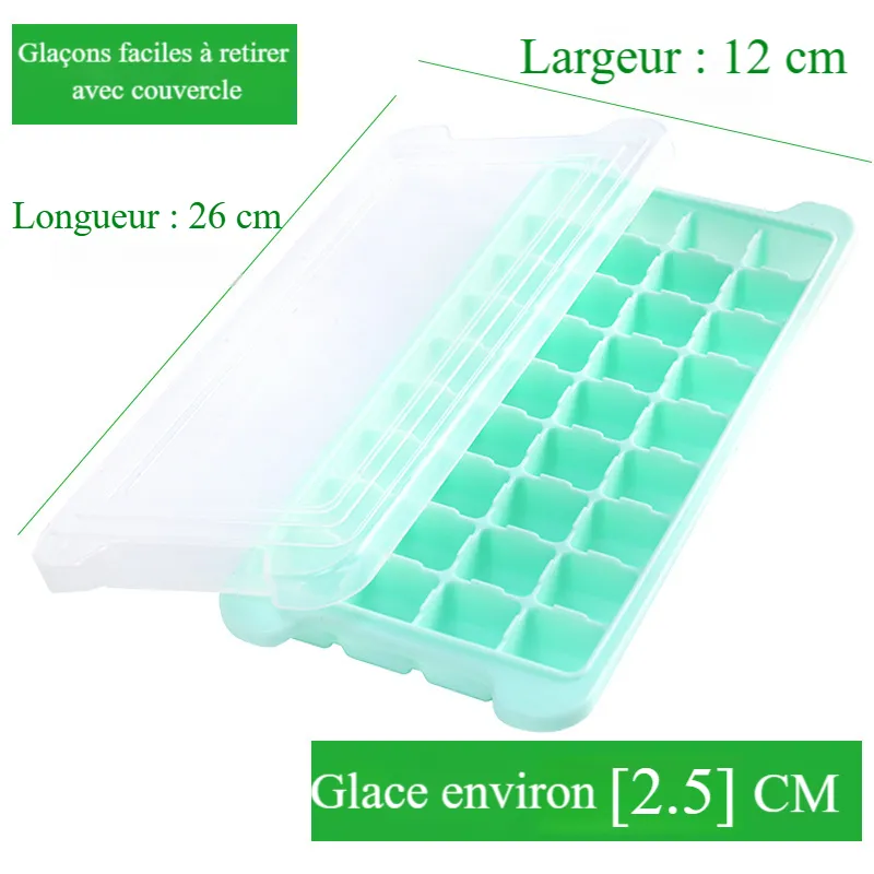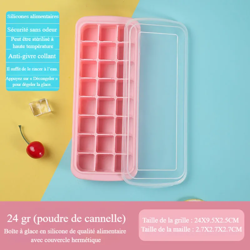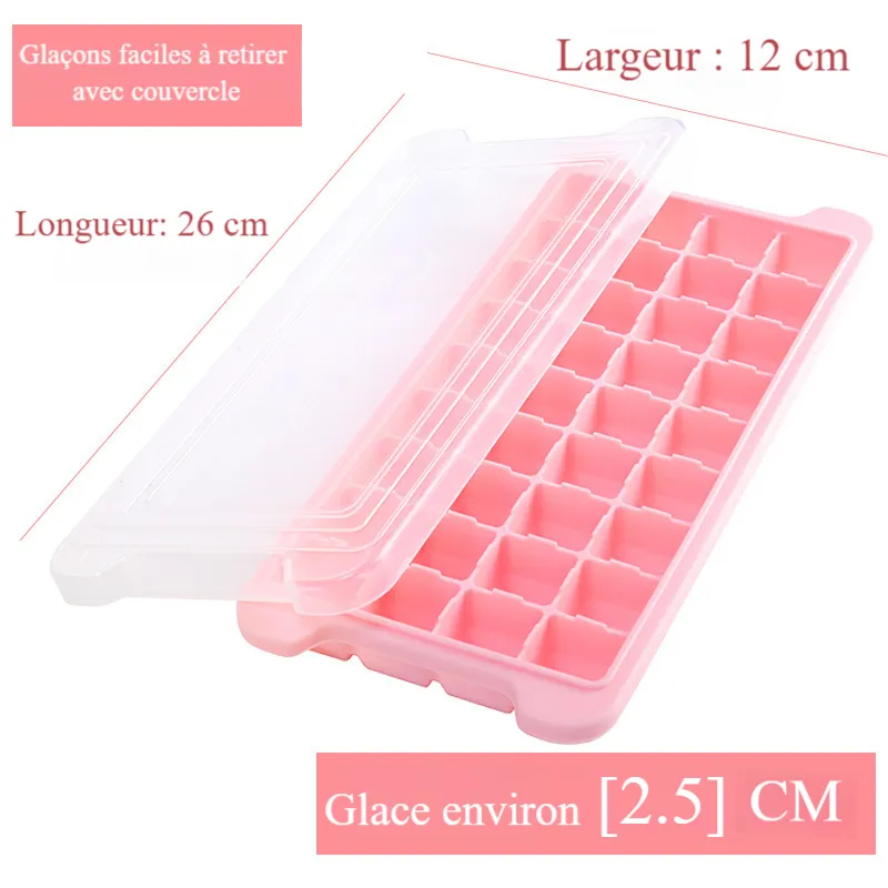 Bac à glaçons en silicone avec couvercle, pour bar, maison, 24 compartiments, qualité alimentaire, 36 compartiments, boîte de rangement commerciale