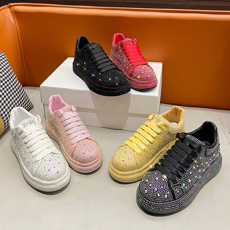 Produits européens pleins de diamants pour la mode féminine 2024 Baskets de sport et de loisirs respirantes ultra-fibres d’été Chaussures pour femmes à semelles épaisses à la mode et polyvalentes