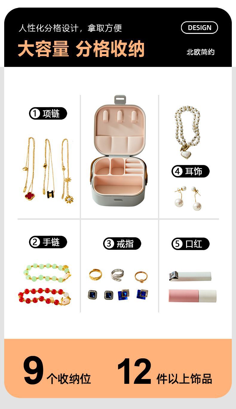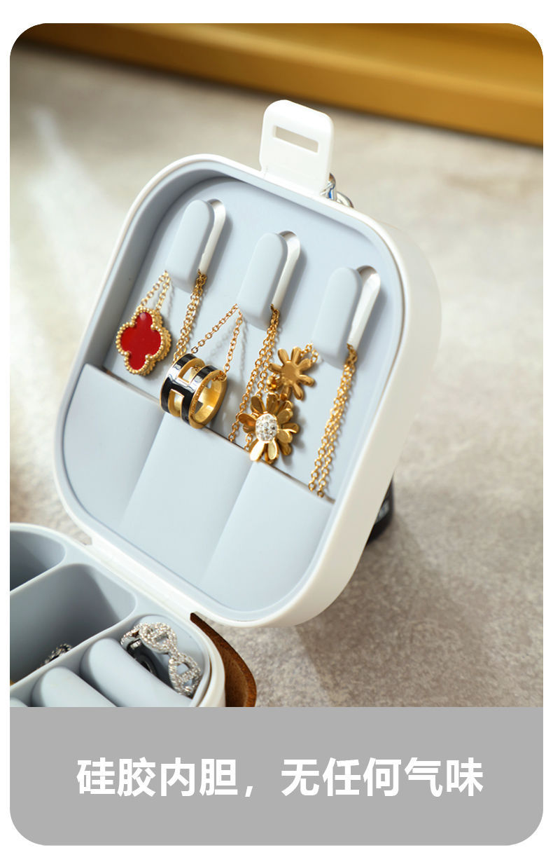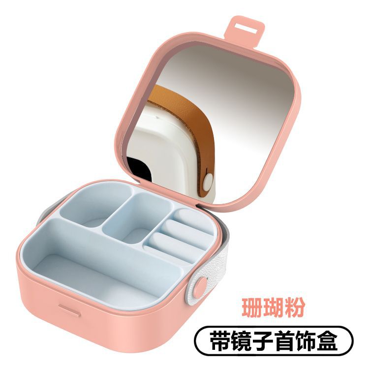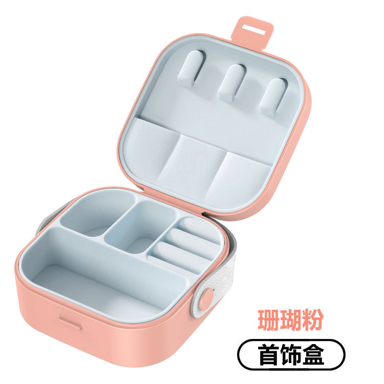 Boîte à bijoux portable, bague, bijoux, collier, rouge à lèvres, boîte de rangement multifonctionnelle compartimentée, jolie niche à transporter