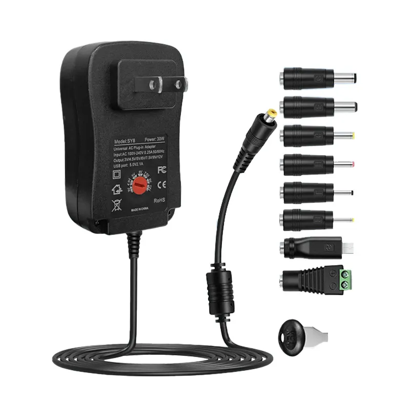 Chargeur multifonction 30 W, 8 prises femelles, alimentation réglable standard US, adaptateur multifonction 3 V-12 V