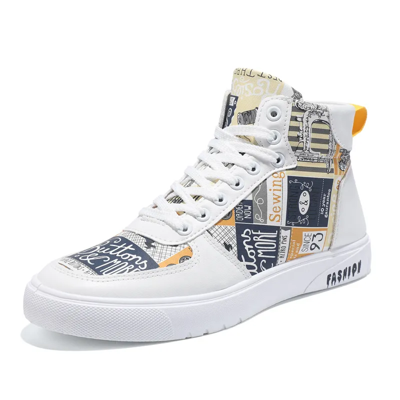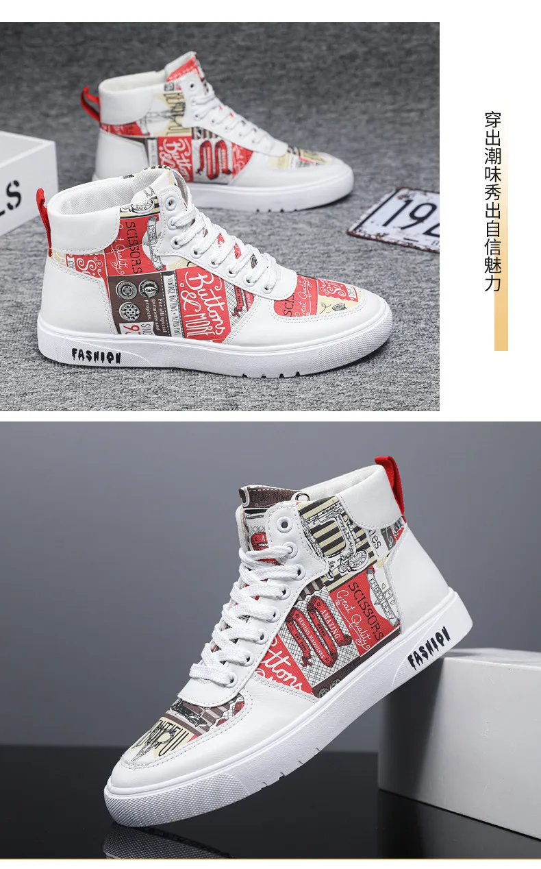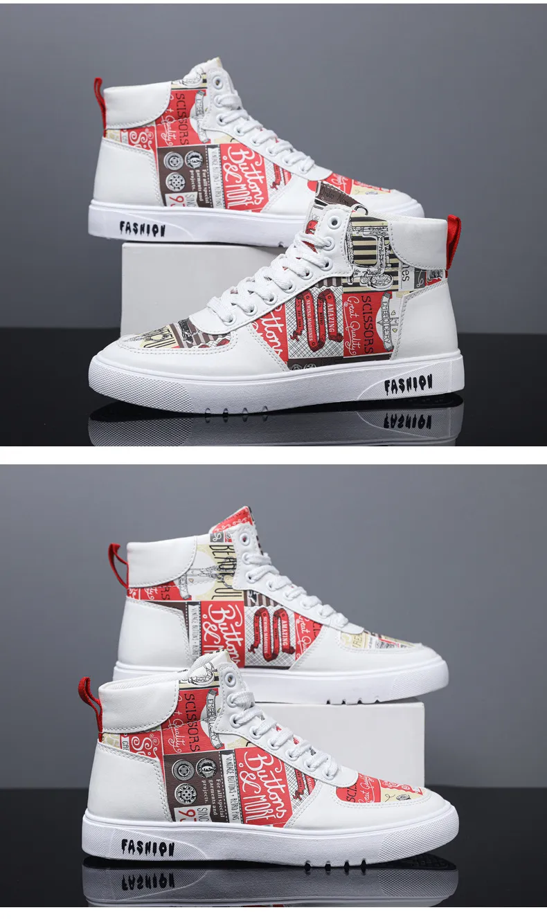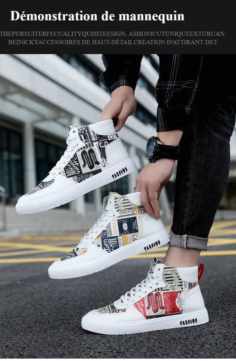 - Forme des orteils: Tête ronde, Chaussures style graffiti montantes pour hommes