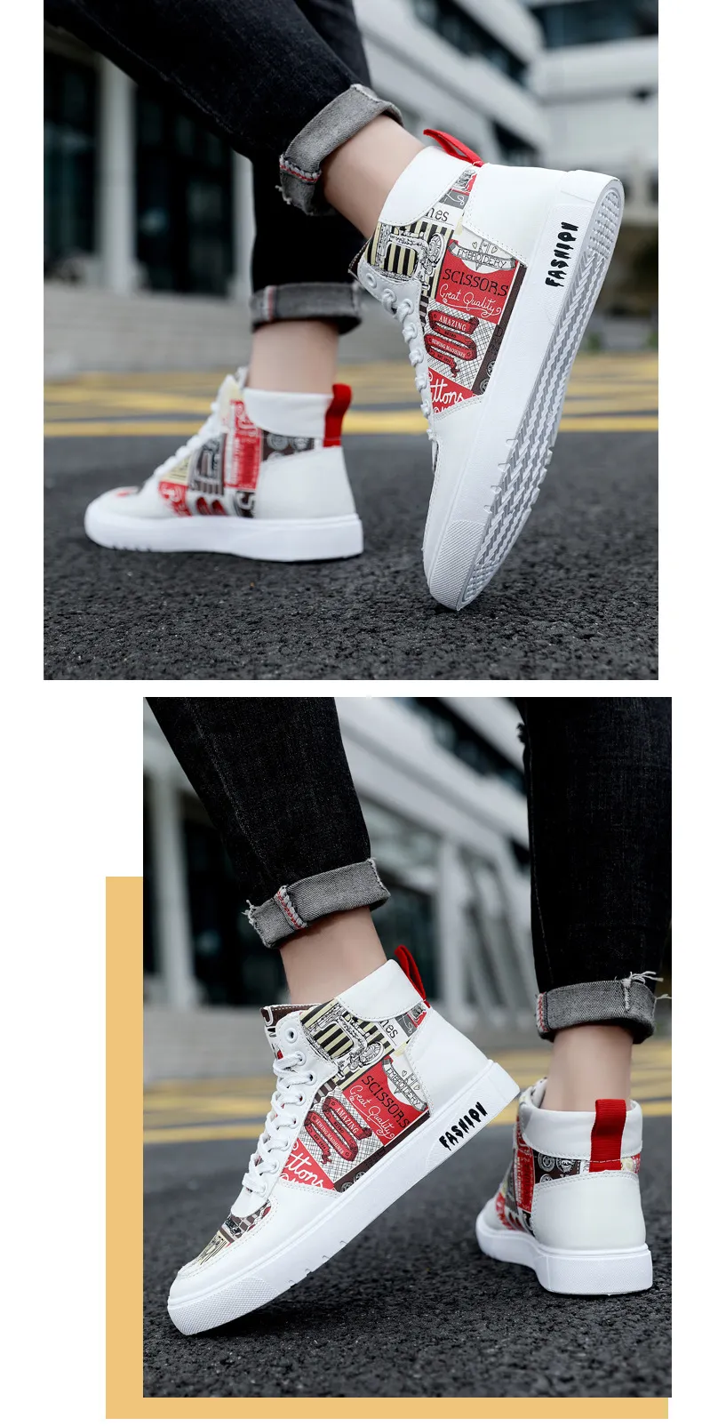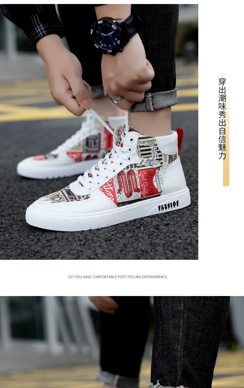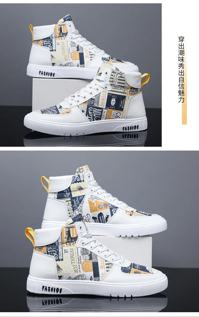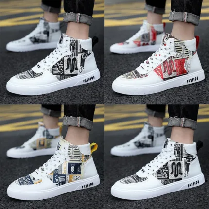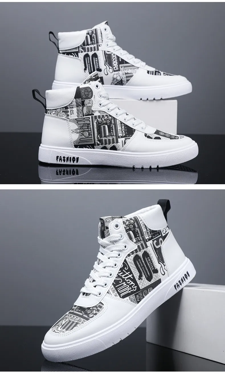 - Forme des orteils: Tête ronde, Chaussures style graffiti montantes pour hommes