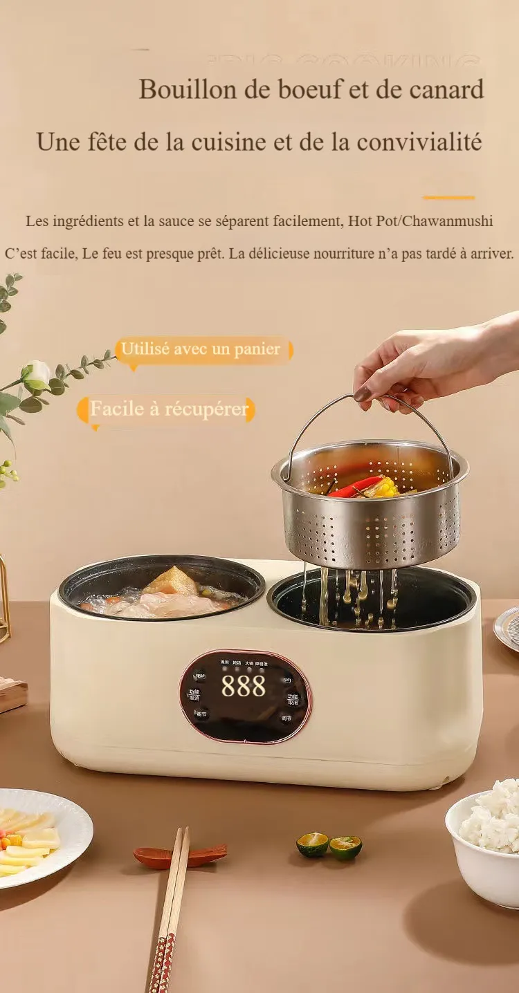 • Fonction chauffage électrique/marmite : cuisson à la vapeur, sauté, friture, friture, ébullition