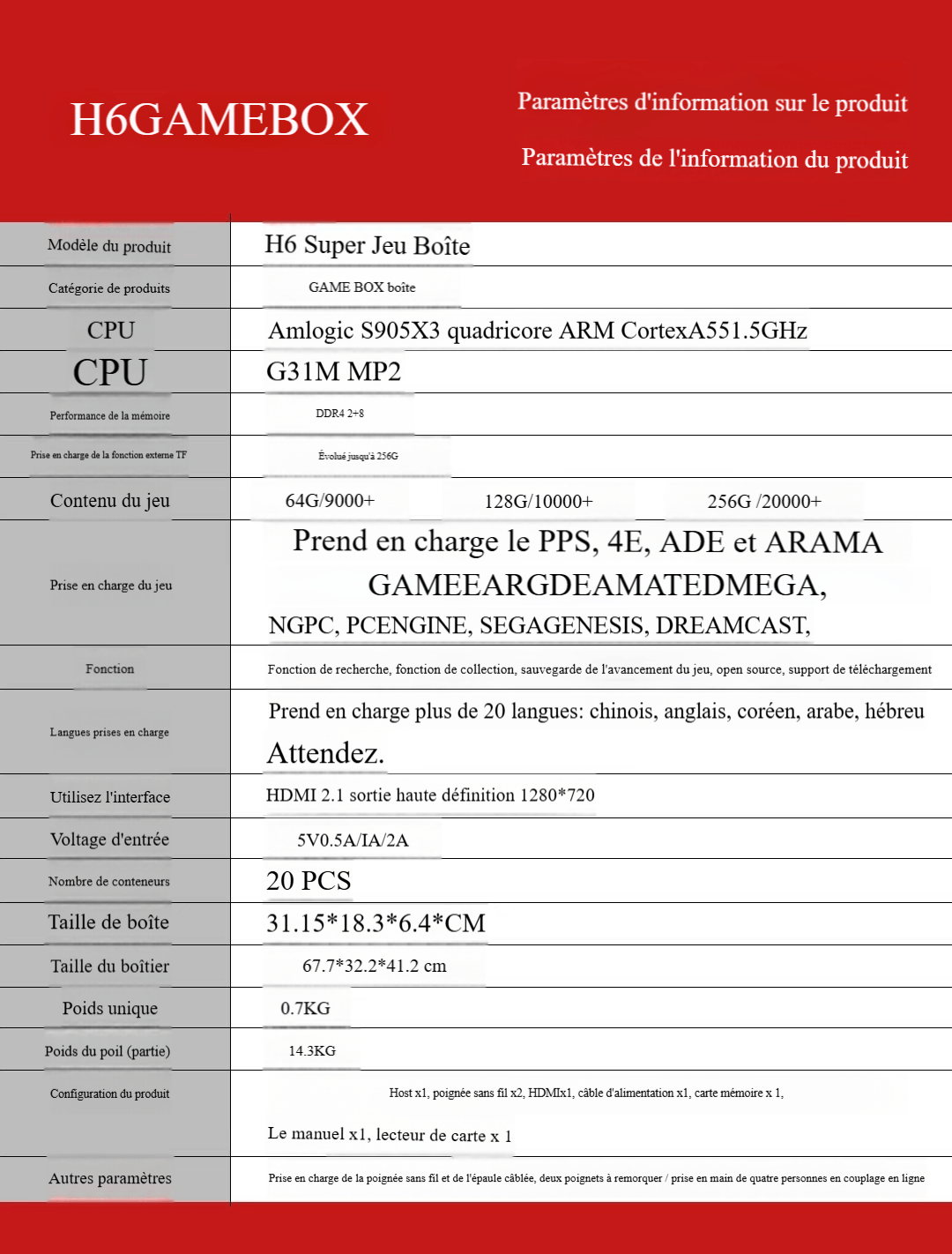 - Modèle: Consoles de jeux GAMEBOXH6/H6