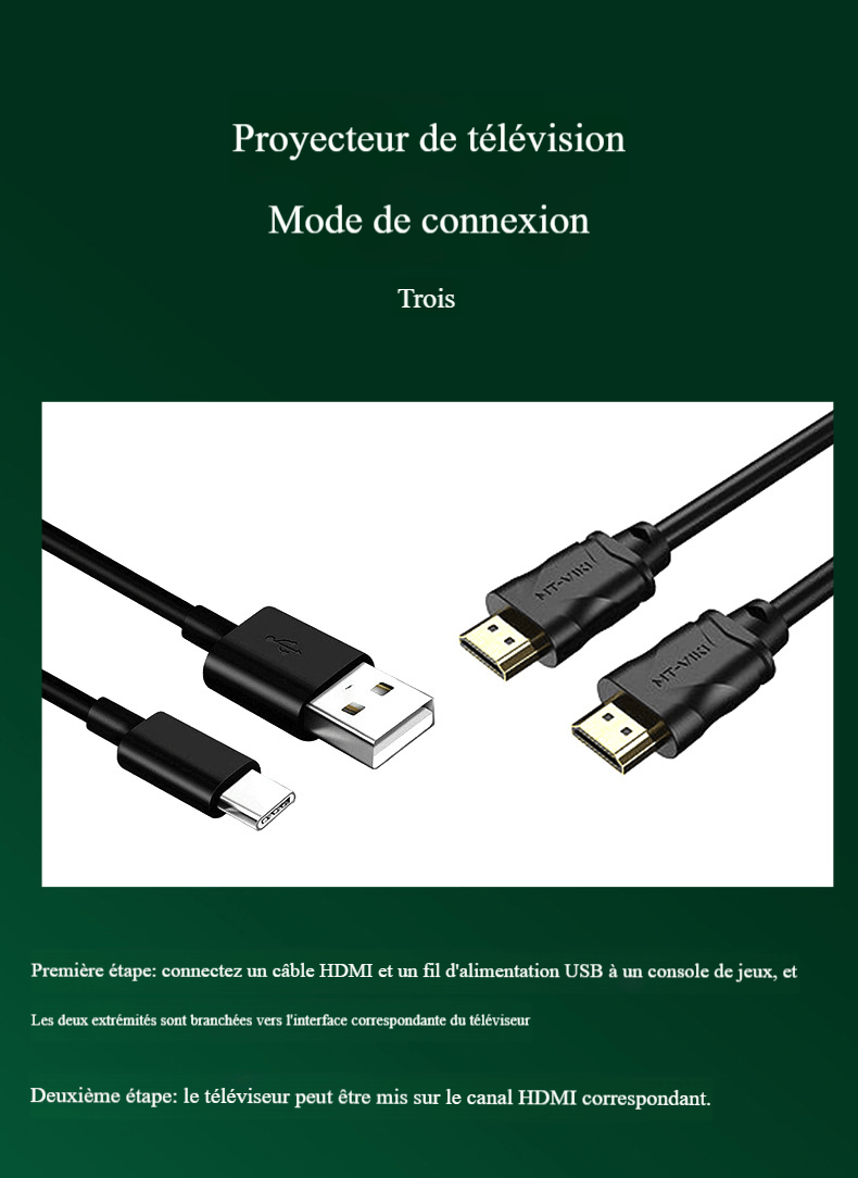 - Liste de colisage: Unité principale, poignée, câble HDMI, câble d’alimentation, manuel, emballage