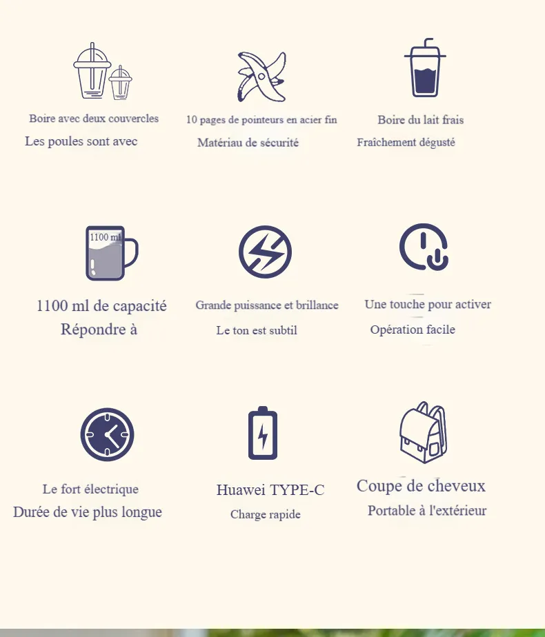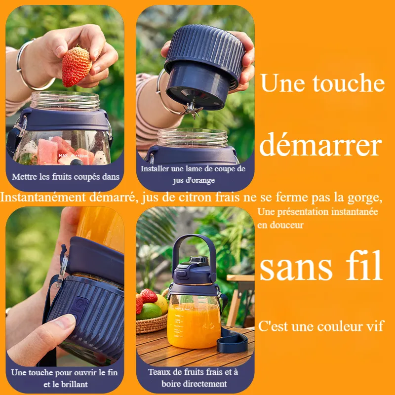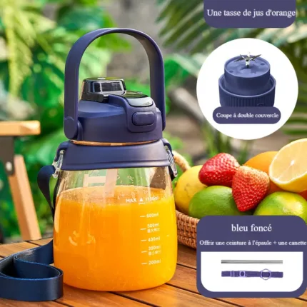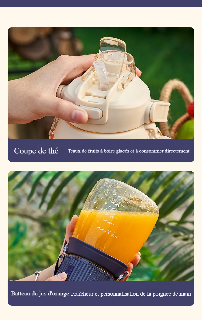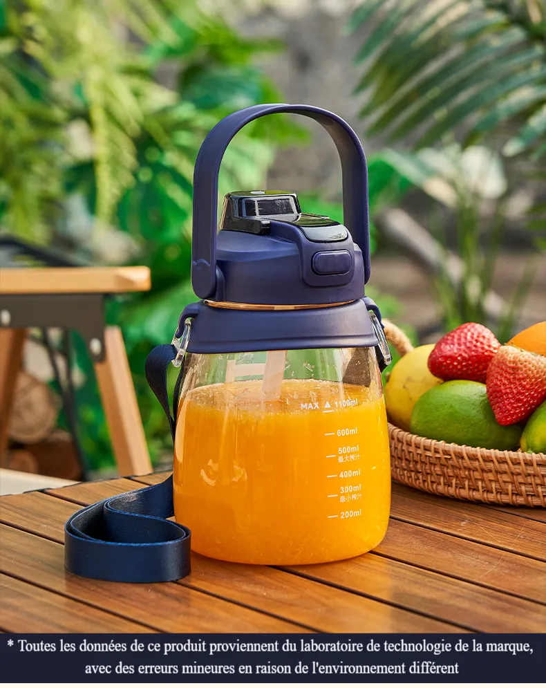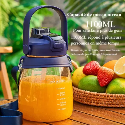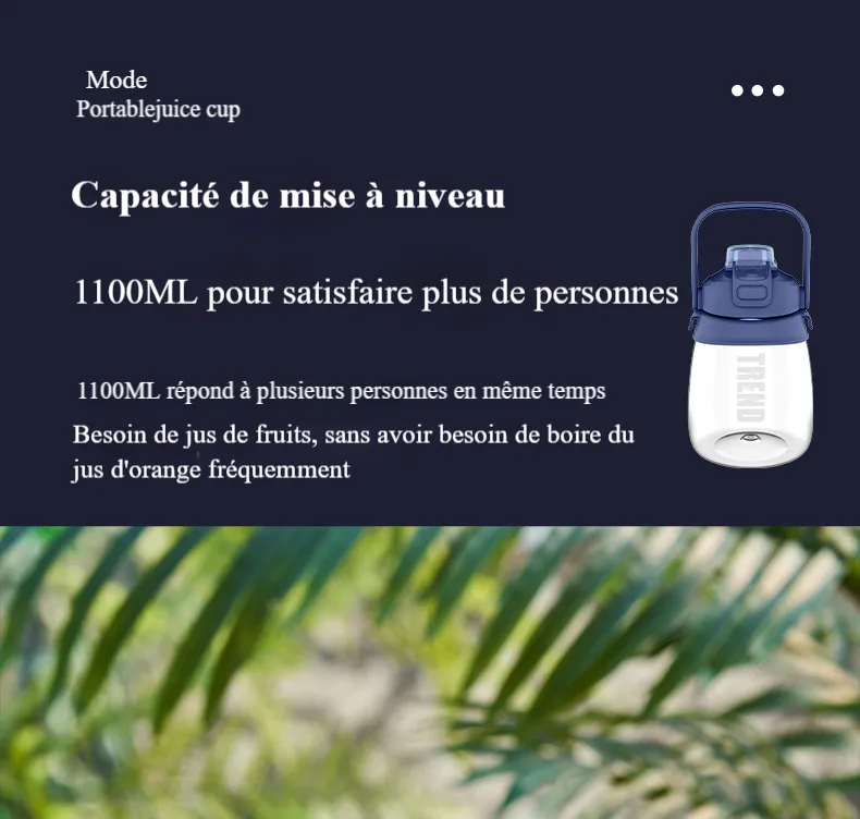 - Spécifications du produit :: Une tasse avec double couvercle avec paille 10 têtes de couteau 1100ML peut être soulevée ou transportée