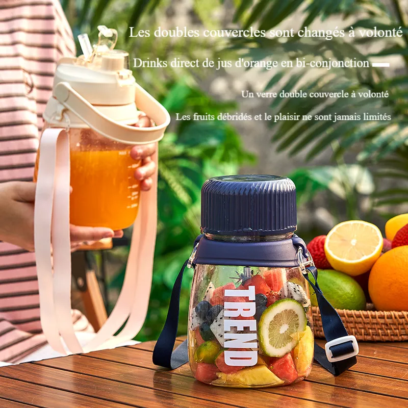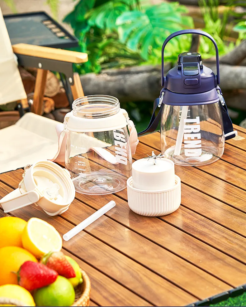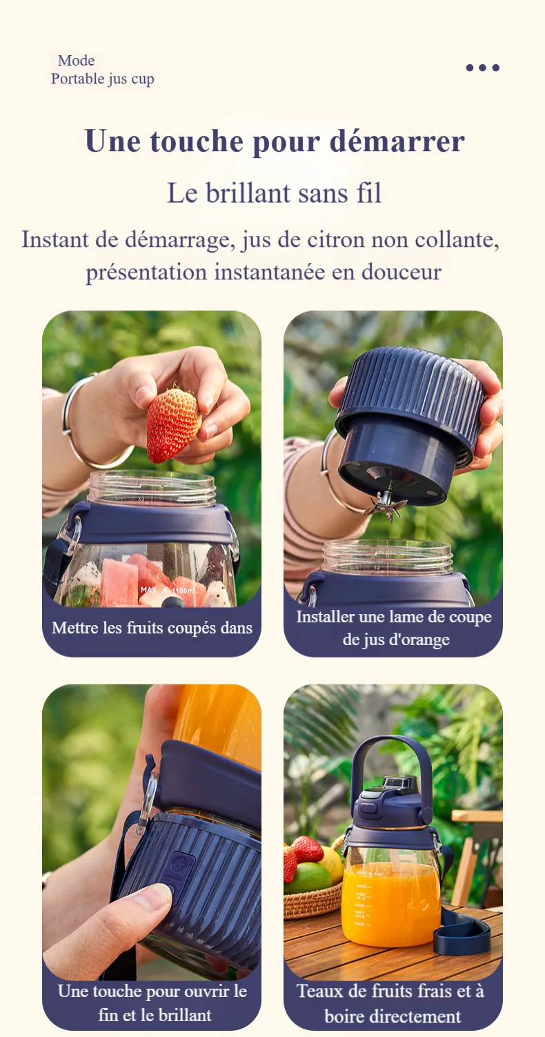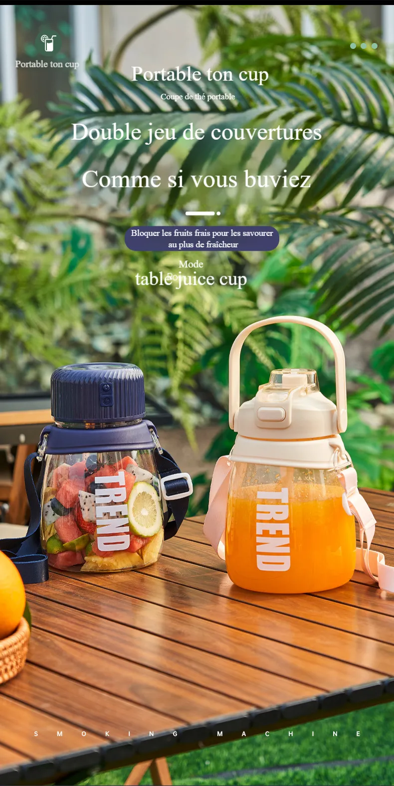- Spécifications du produit :: Une tasse avec double couvercle avec paille 10 têtes de couteau 1100ML peut être soulevée ou transportée