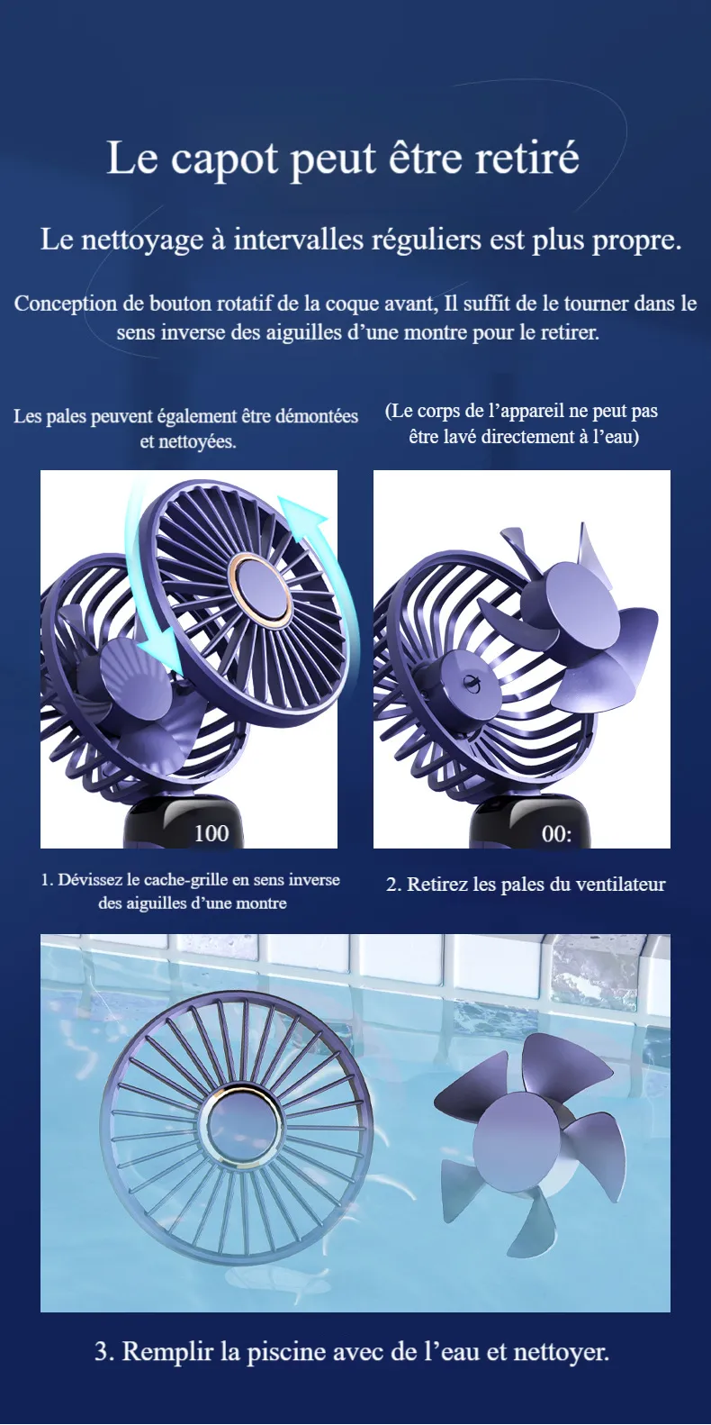 - Niveau de vitesse du vent : 3 niveaux