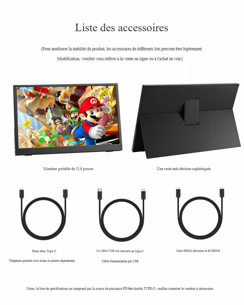 - taille: Moniteur 1080P de 15,6 pouces (vente chaude), moniteur 1080P de 15,6 pouces + étui en cuir (pouce)