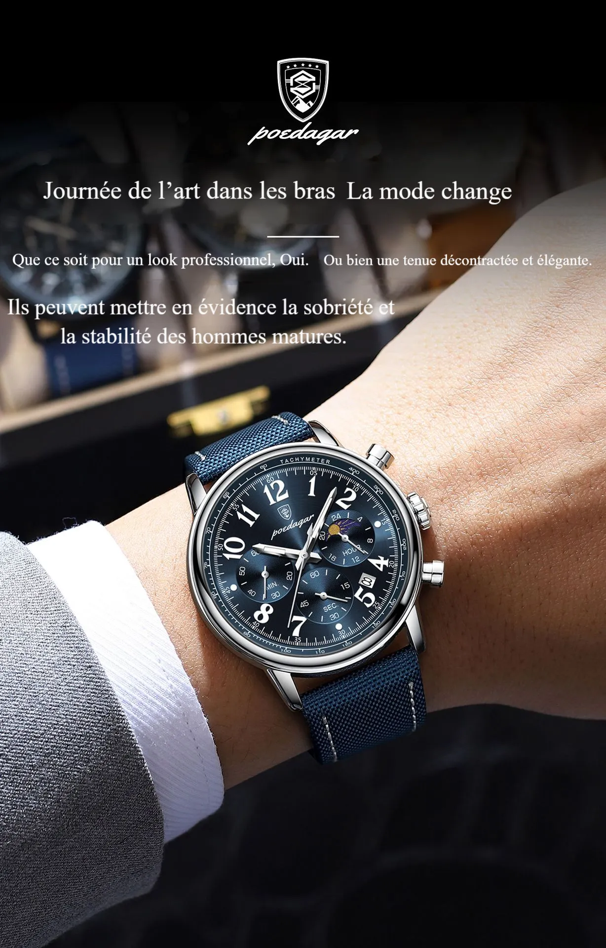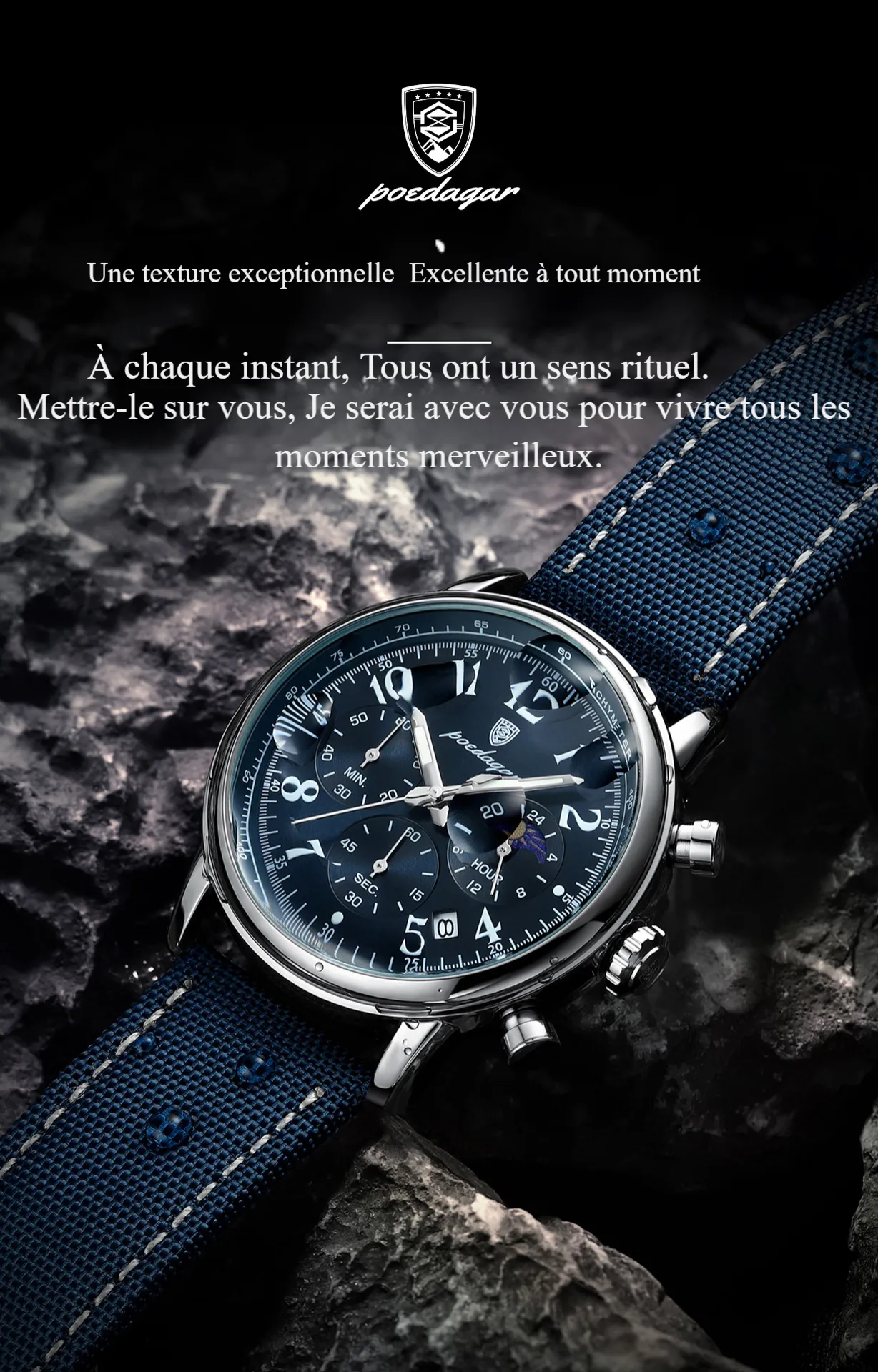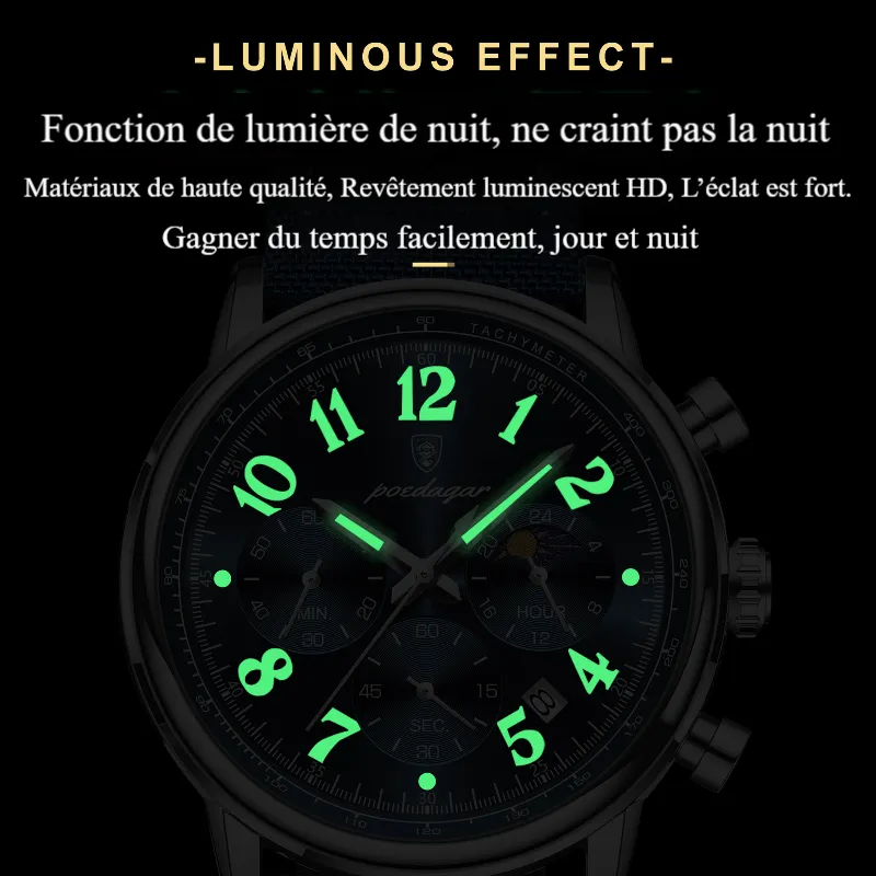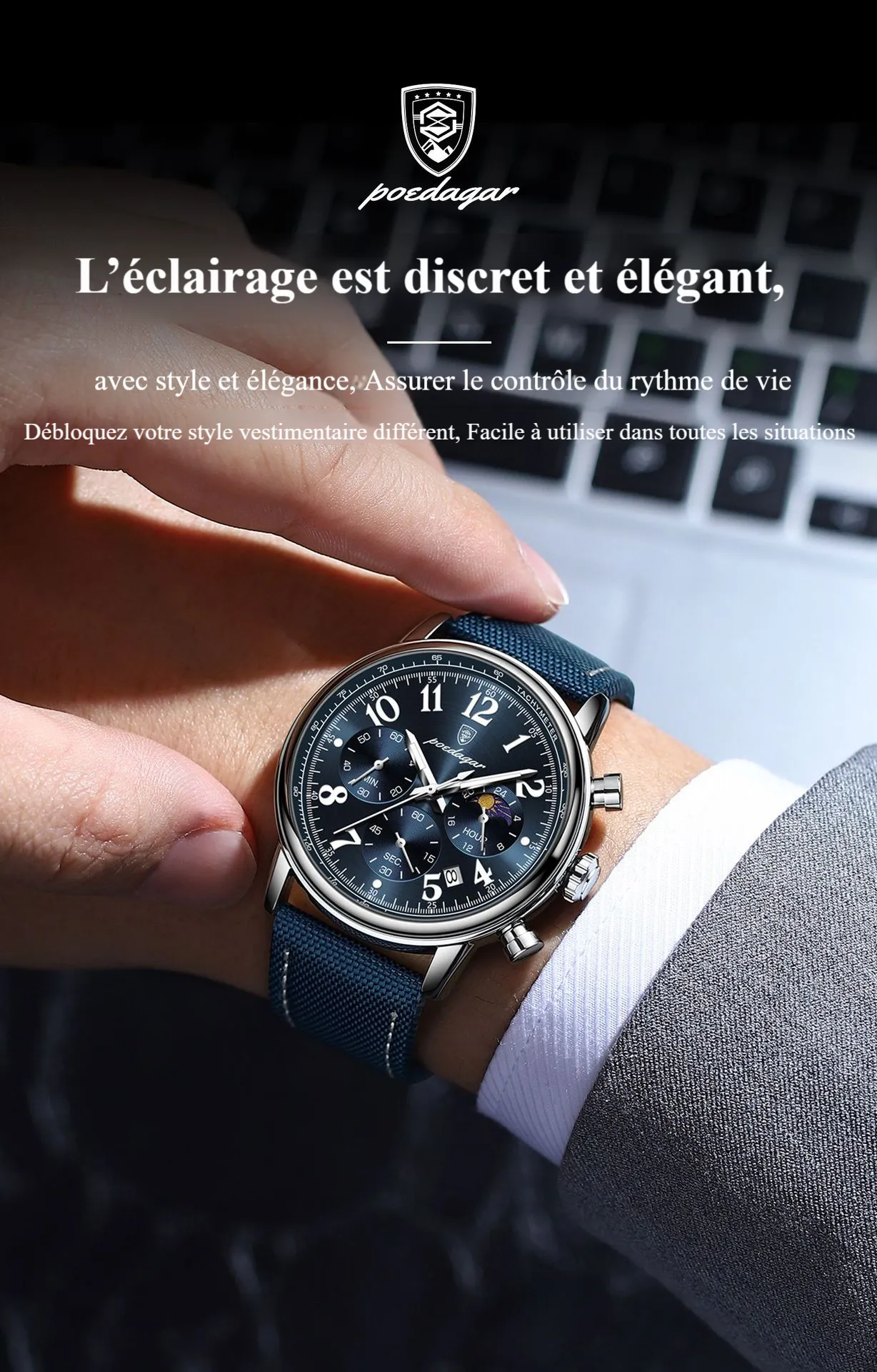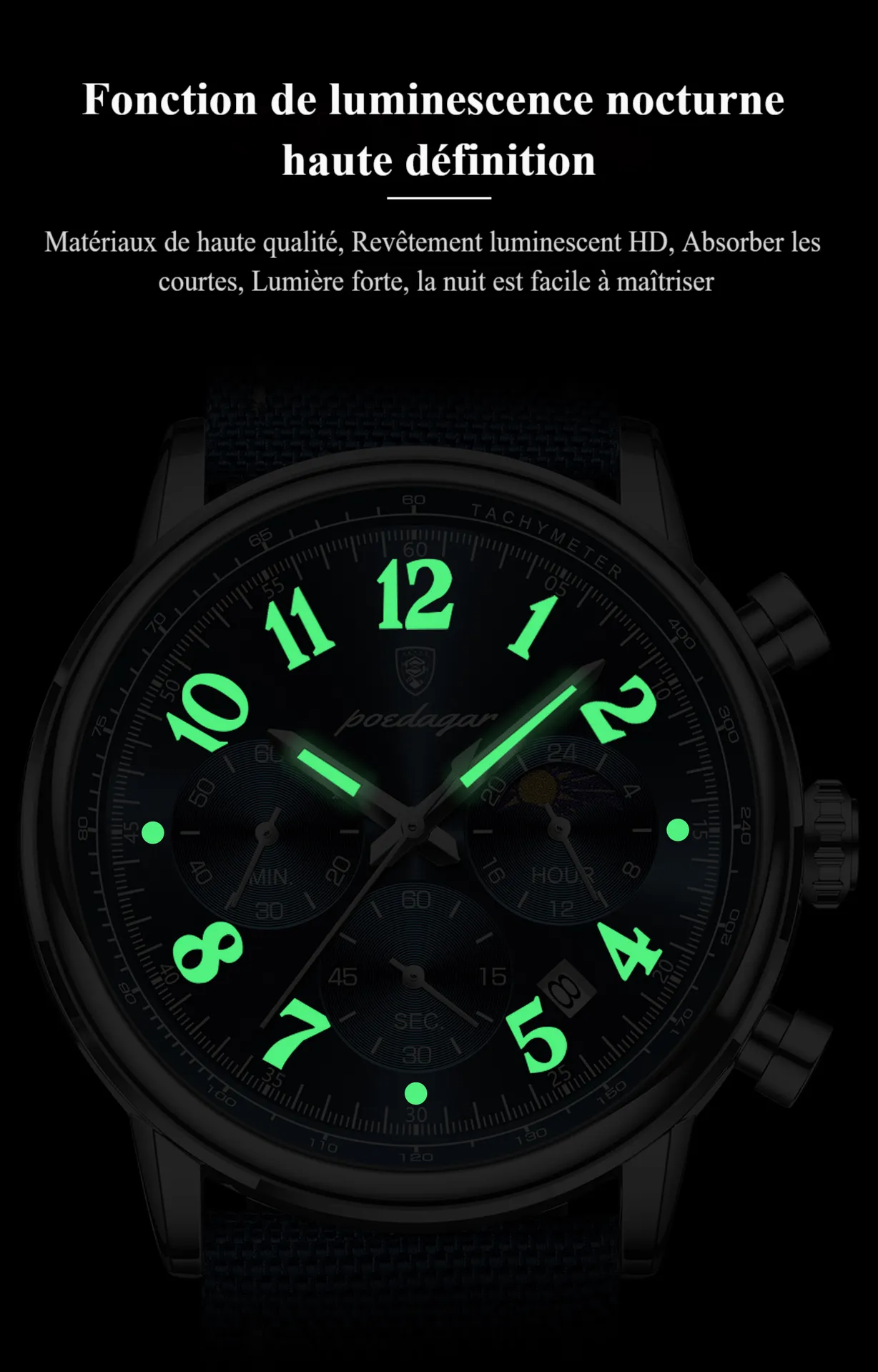 - Marque : POEDAGAR, Montre chronographe multifonction à quartz lumineuse