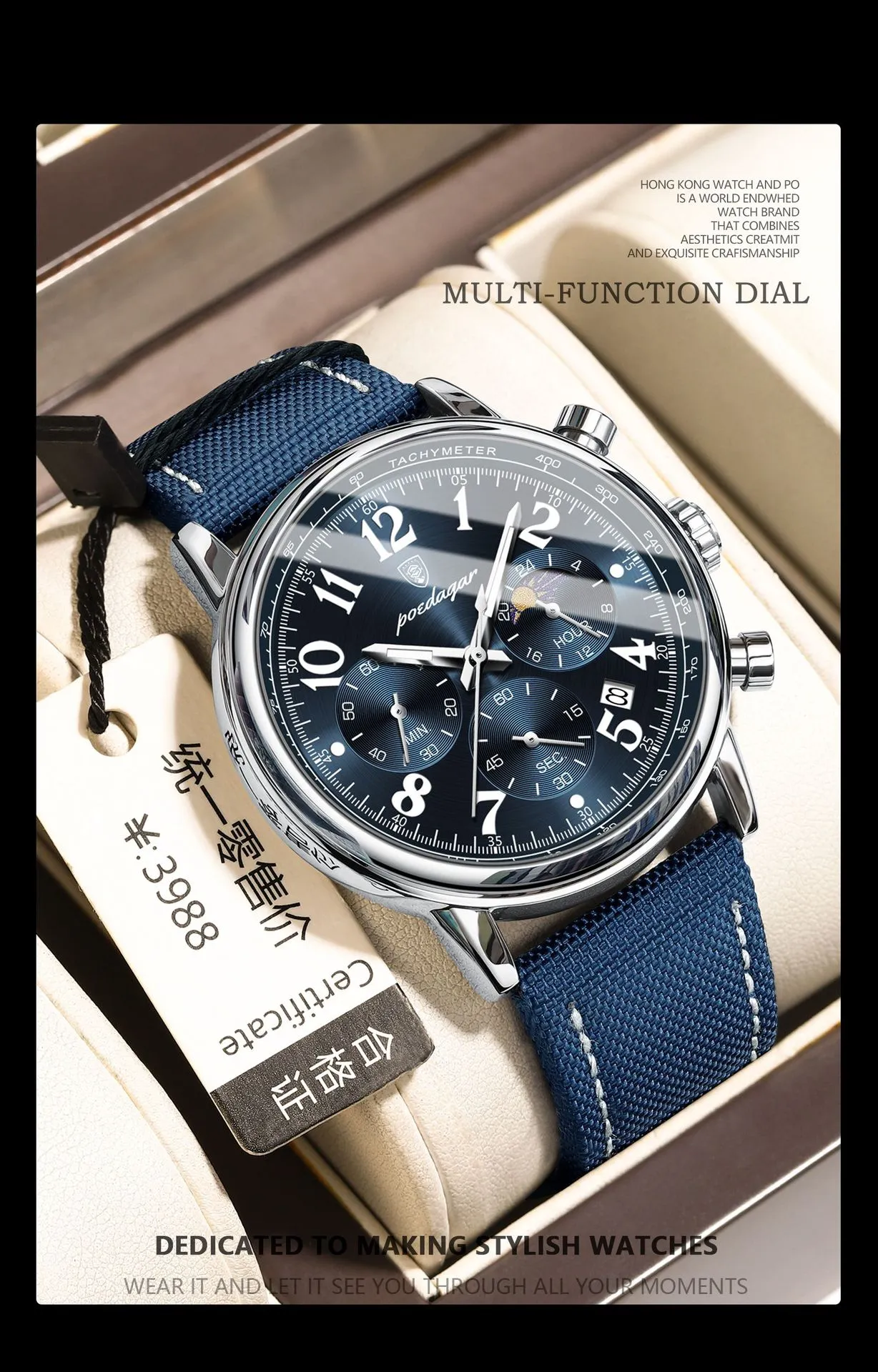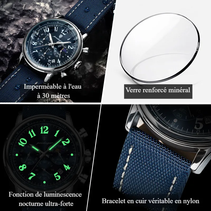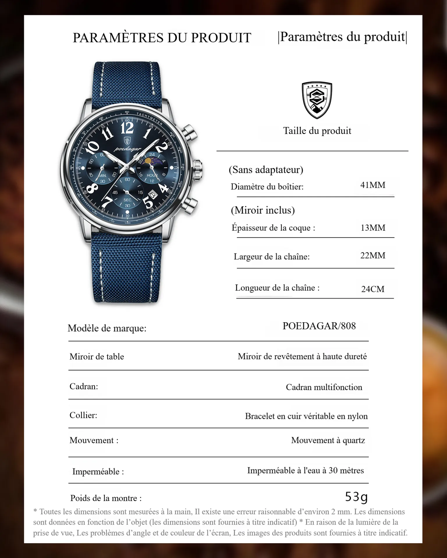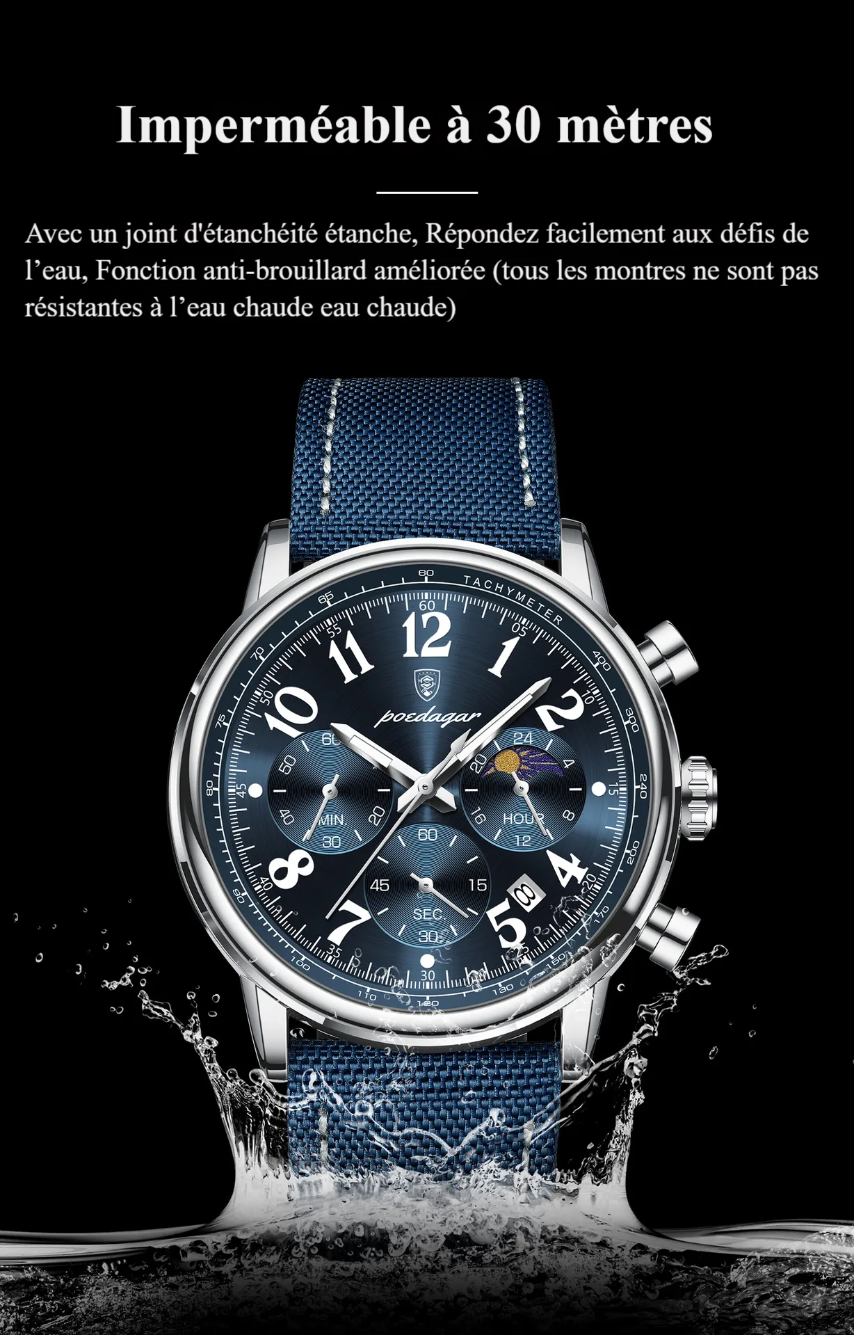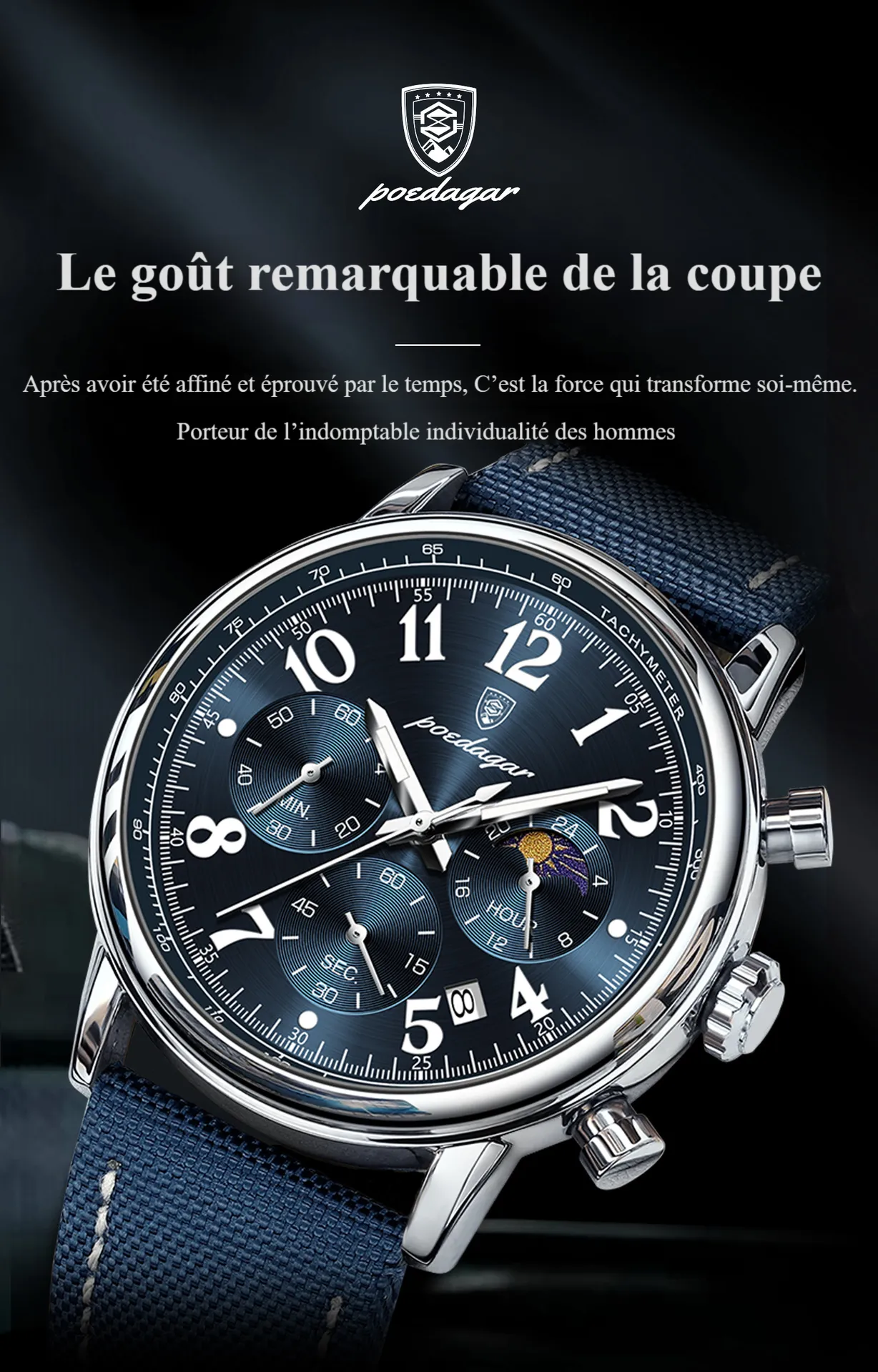 - Marque : POEDAGAR, Montre chronographe multifonction à quartz lumineuse