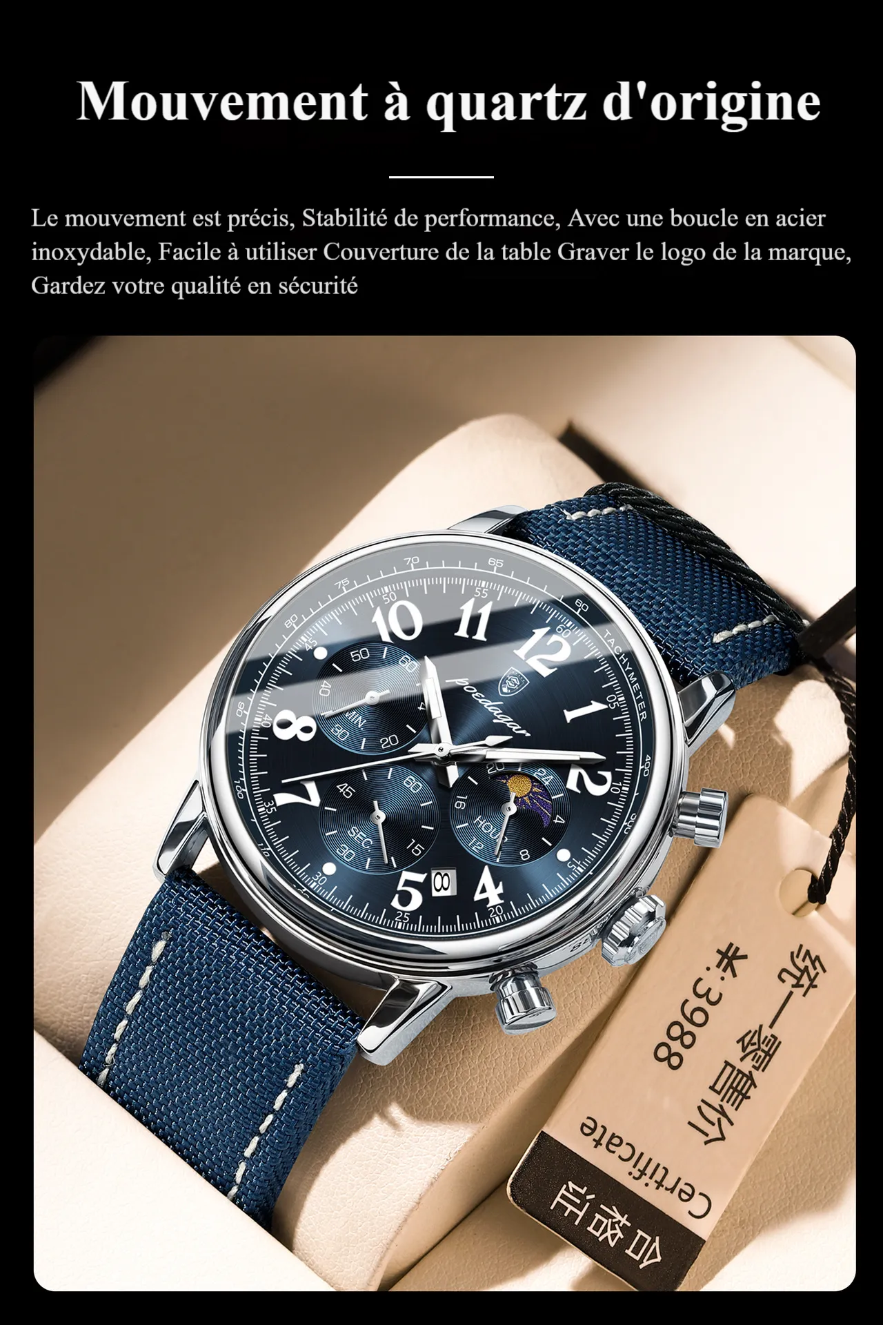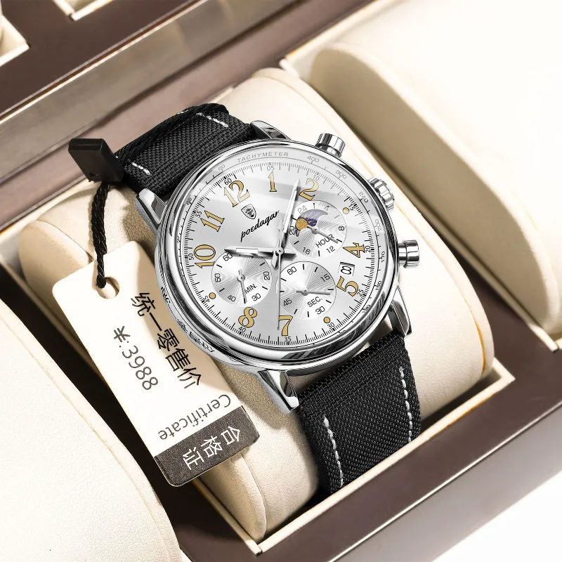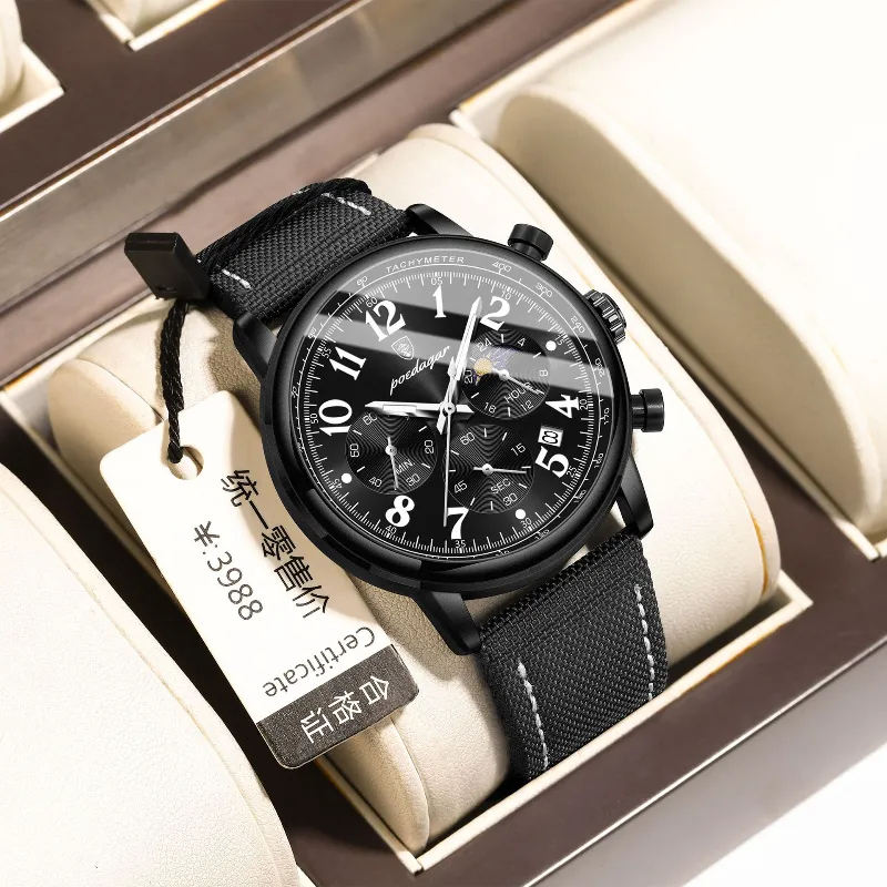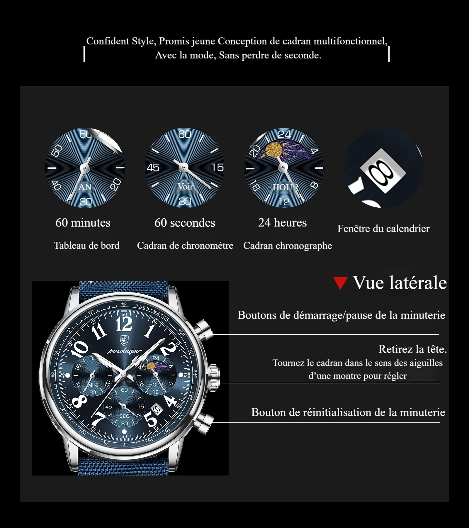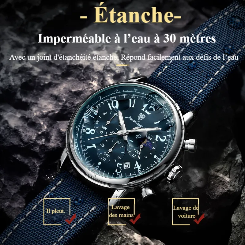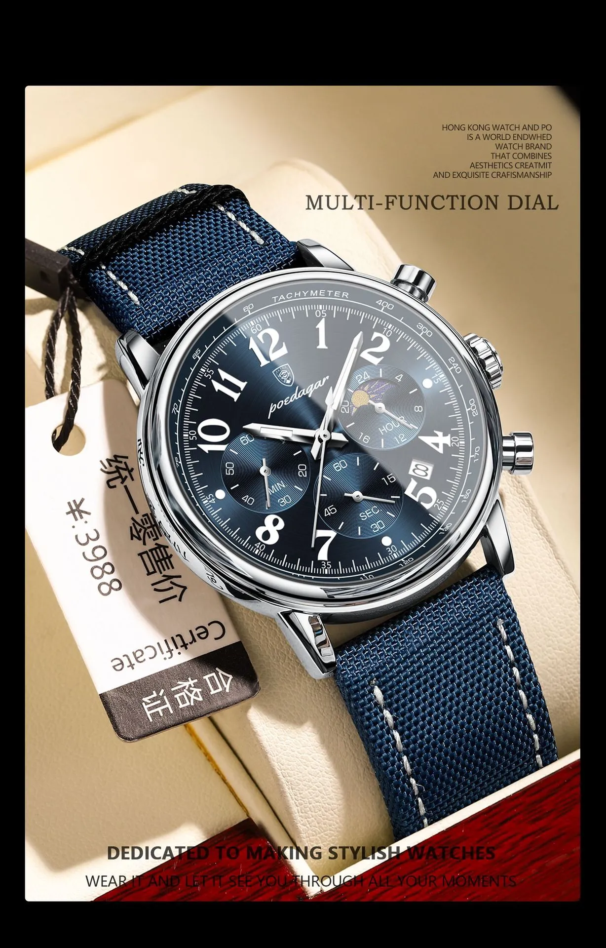 - Marque : POEDAGAR, Montre chronographe multifonction à quartz lumineuse