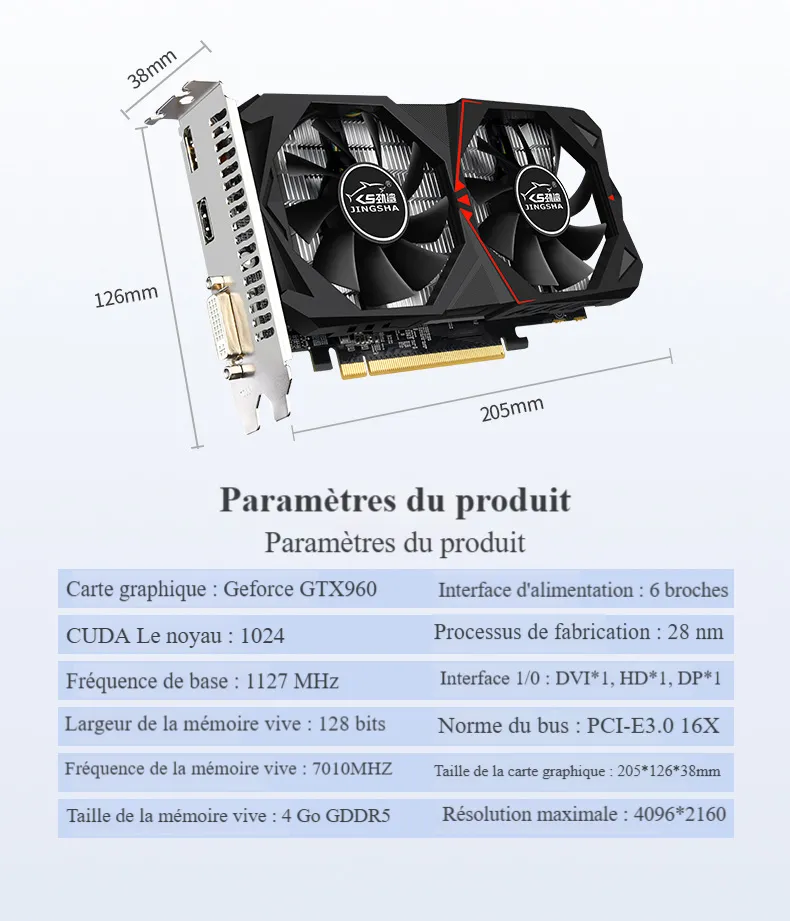 - marque: Requin, Nouvelle carte graphique JINGSHARK GTX960 4 Go GDDR5