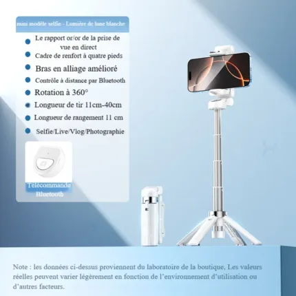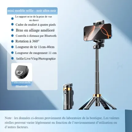 Perche à selfie ultra-mini avec télécommande Bluetooth et trépied intégré au sol, éclairage de remplissage pour selfie portable, appareil de prise de vue auxiliaire multifonction