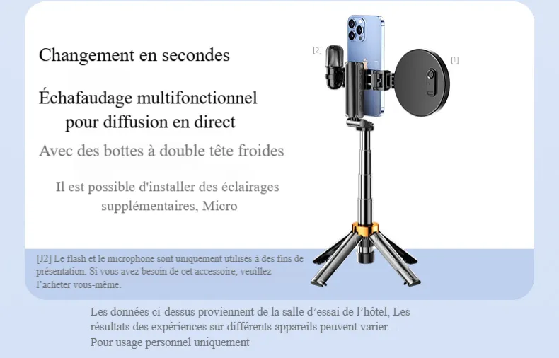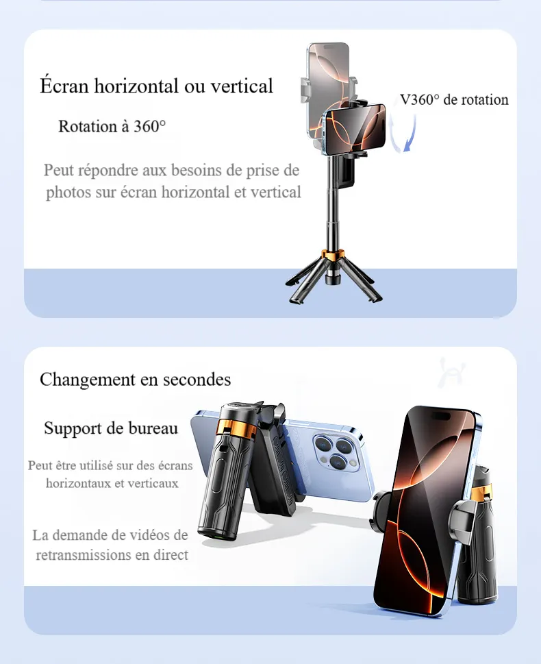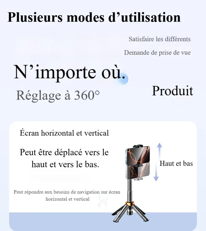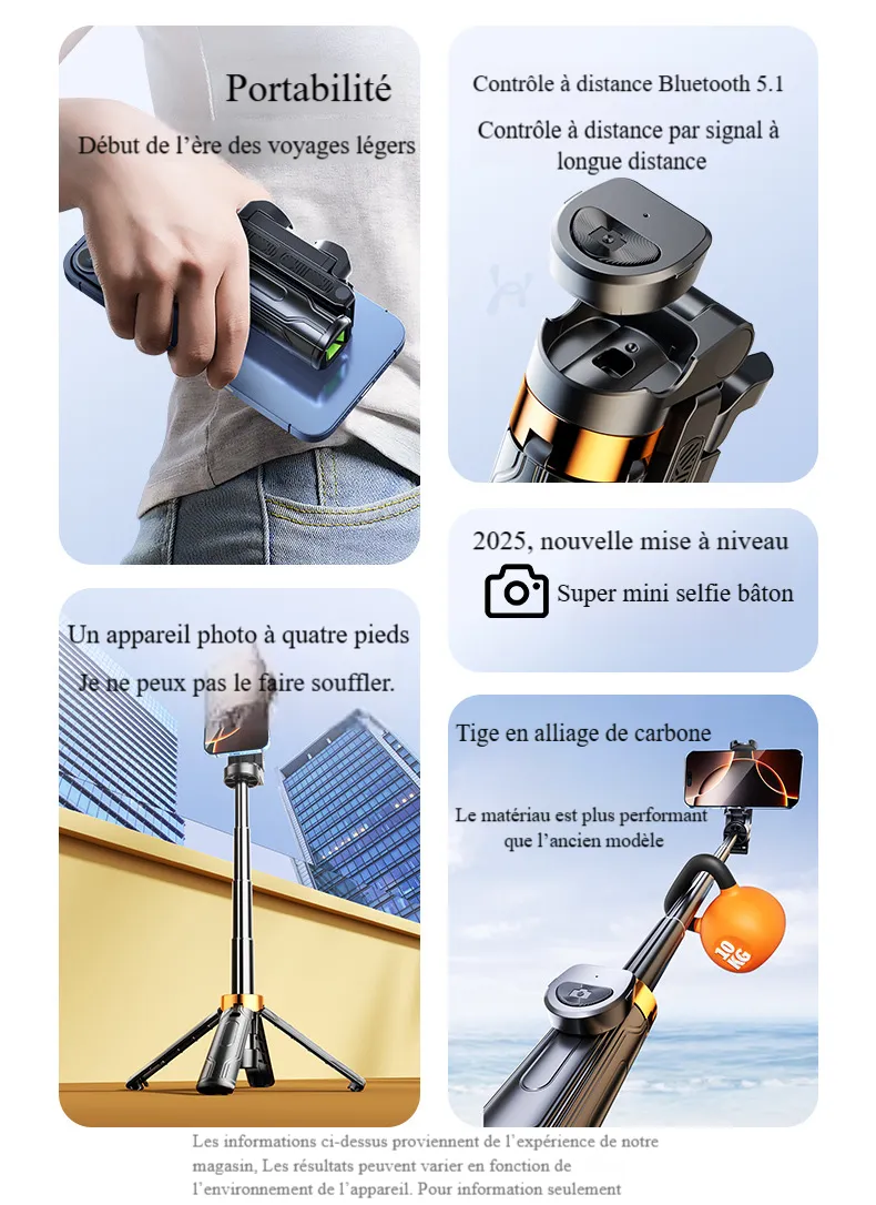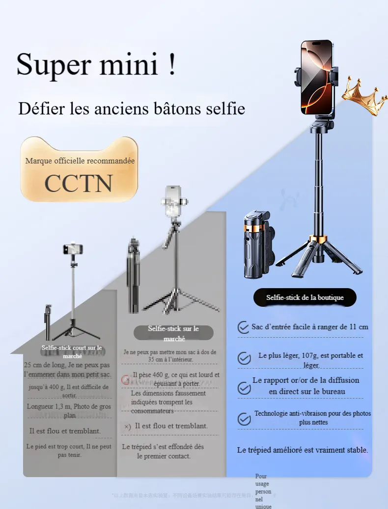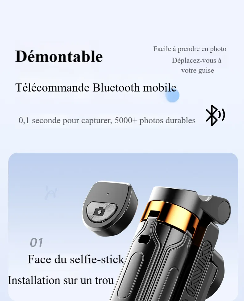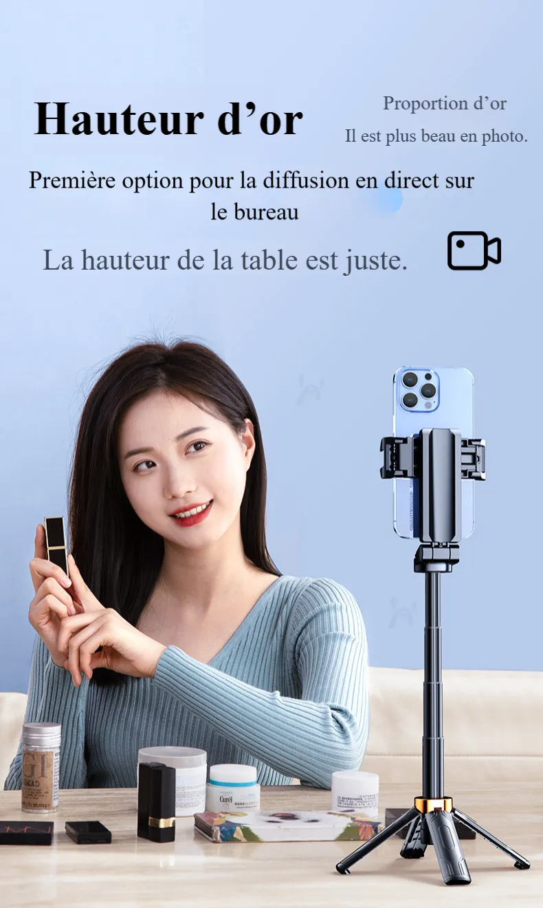 Perche à selfie ultra-mini avec télécommande Bluetooth et trépied intégré au sol, éclairage de remplissage pour selfie portable, appareil de prise de vue auxiliaire multifonction