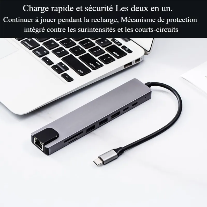 Périphérique d’extension Huit en un Type-C à HDMI Network Card Converter Typec Multi-fonction USB Hub Expansion Dock
