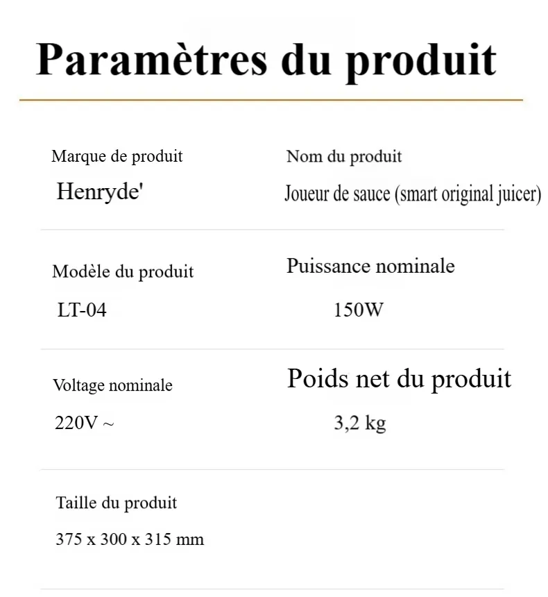- Vitesse maximale de l’extracteur de jus: 12000 tr/min et moins