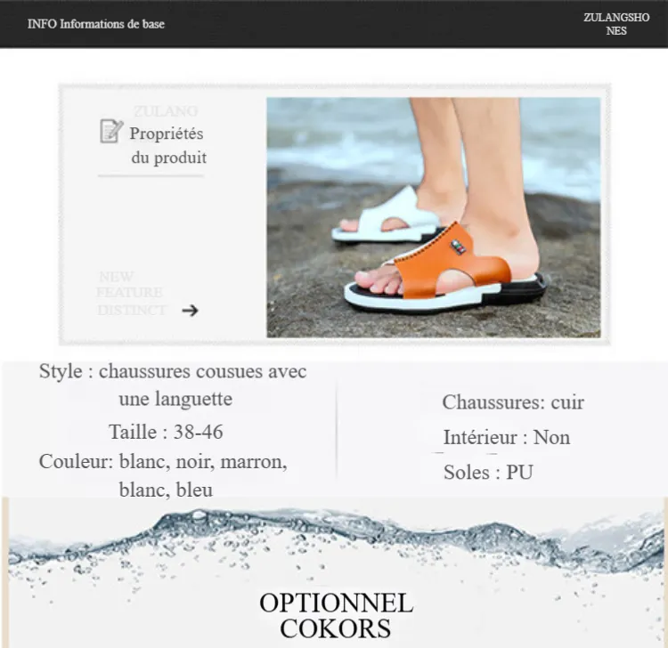 - Catégories de produits: Tongs, Sandales en cuir assorties à bout ouvert