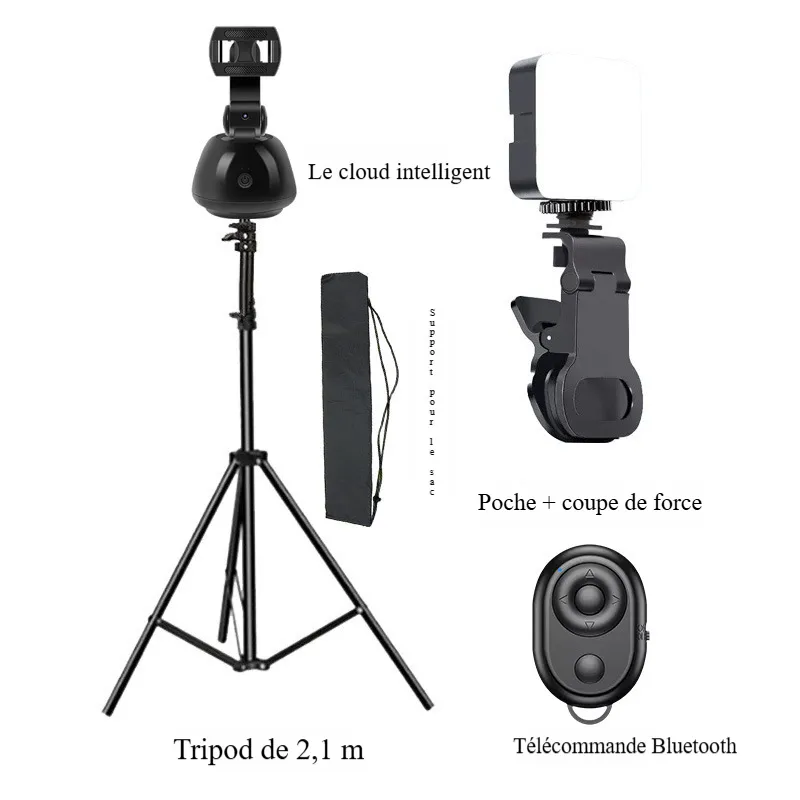 • [La version phare n’a pas besoin de télécharger l’application] cardan de suivi + trépied épaissi de 2,1 m + télécommande Bluetooth + sac de rangement,