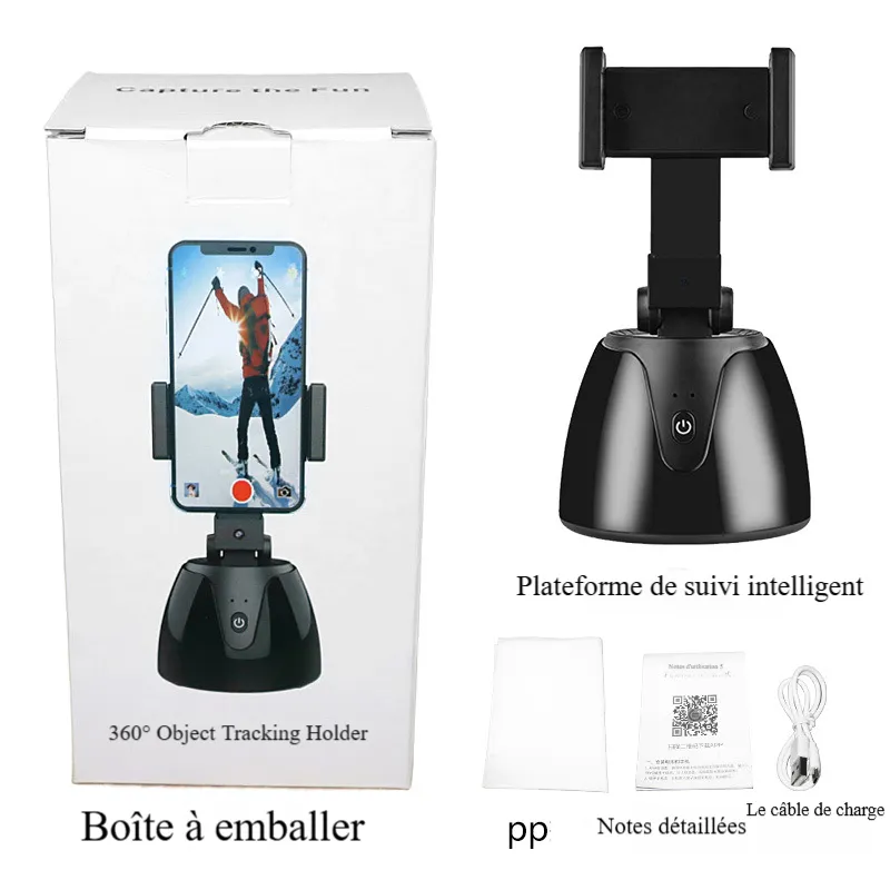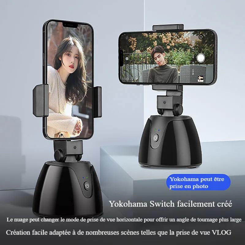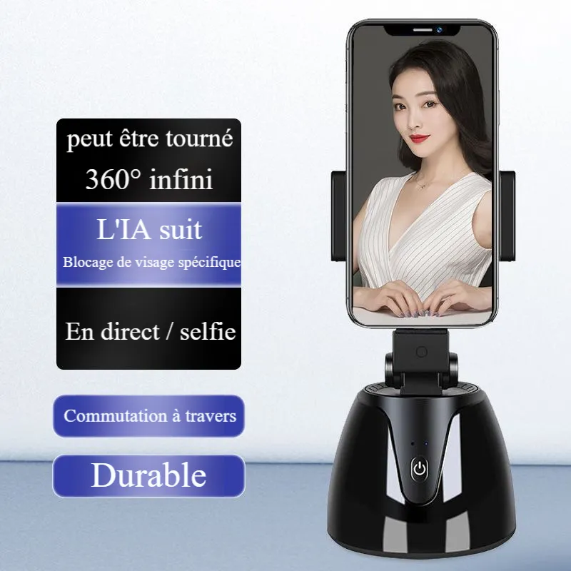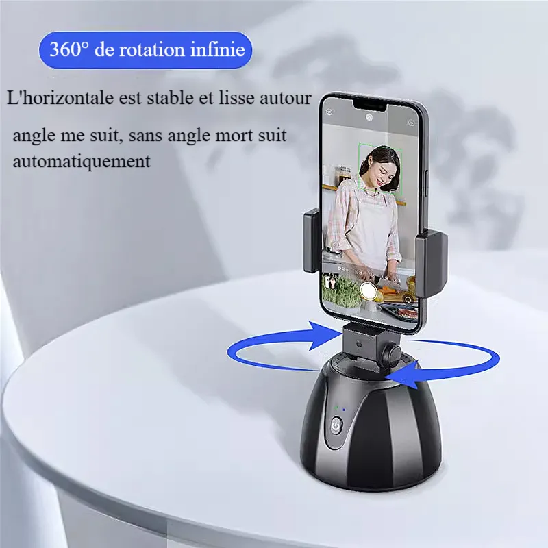 Pince de téléphone en métal de bureau Bluetooth Caméra à rotation automatique à 360 degrés Support de stabilisation anti-tremblement Gimbal de suivi intelligent