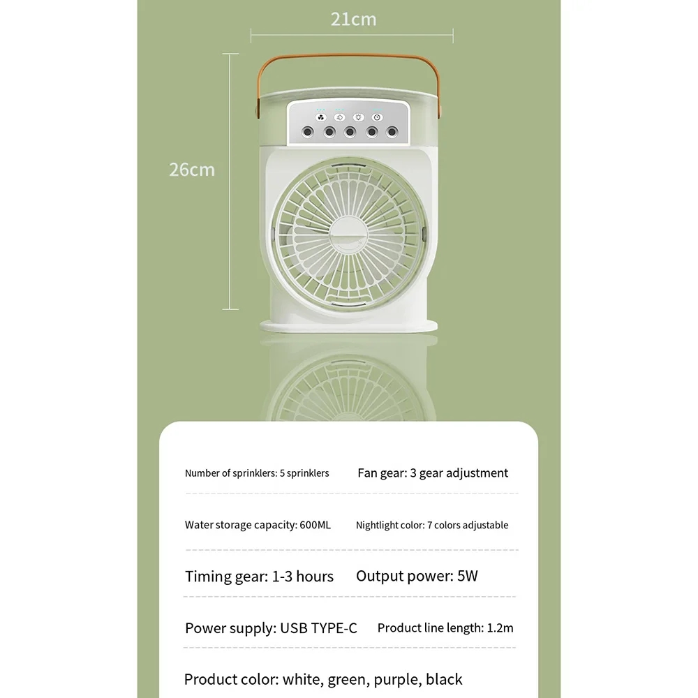 Ventilateur électrique portable, climatiseur, lumière LED USB, humidificateur à brouillard d’eau, mini refroidisseur de bureau, maison, chambre